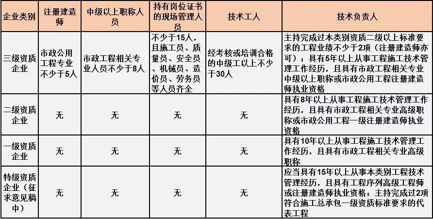 換句話說,并不是所有企業(yè)資質(zhì)都不要求有建造師等企業(yè)人員。施工總承包三級資質(zhì)企業(yè)對建造師等人員仍有要求,一級資質(zhì)、二級資質(zhì)企業(yè)保留技術(shù)負(fù)責(zé)人這一項要求,特級資質(zhì)另有規(guī)定。